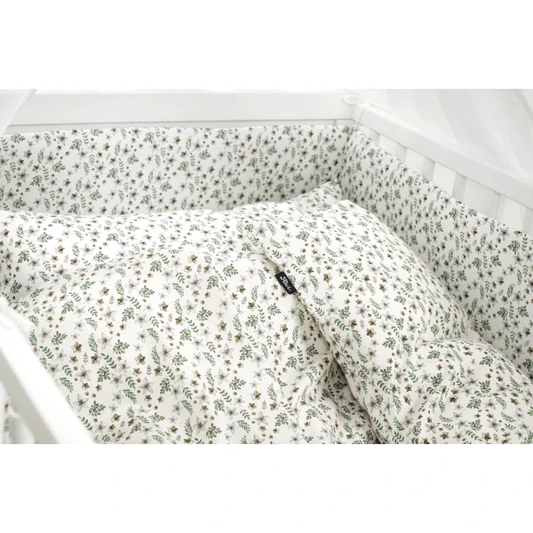 Alvi ® Beddenset 4-delig Petit Fleurs groen/wit 100 x 135 cm