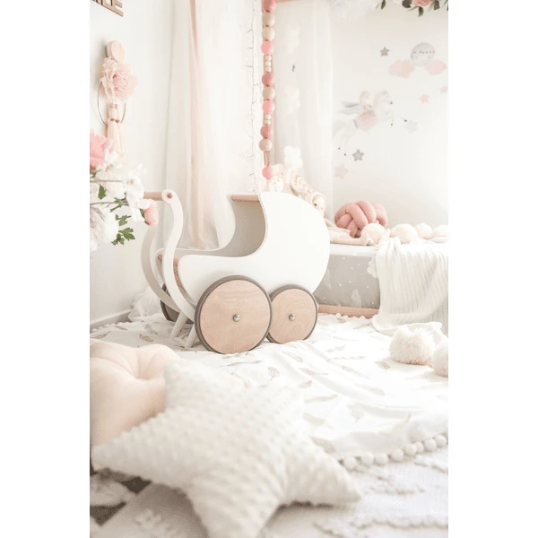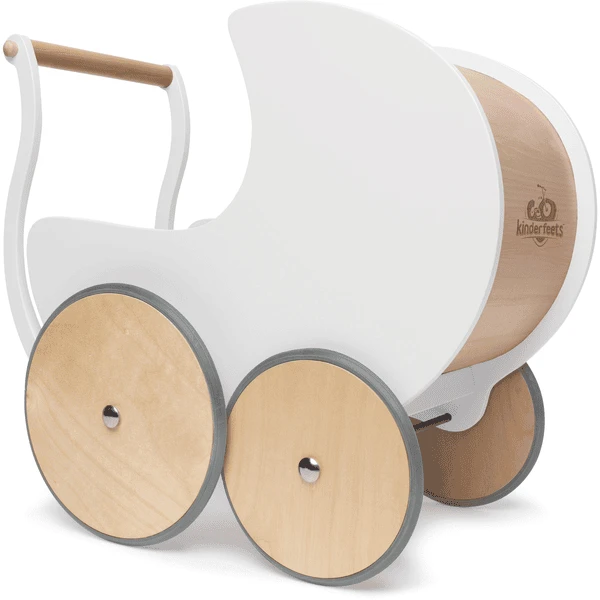 Kinderen vinden het heerlijk om met hun poppen en speelgoed in de buurt te rijden. Deze poppenwagen overtuigt door zijn retro Design . Het is gemaakt van berkenhout en de zijkanten zijn in verschillende kleuren geschilderd. De poppenwagen kan vanaf de leeftijd van 12 maanden gebruikt worden als wandelwagen. Wanneer de kleintjes hun eerste stapjes hebben gezet en meer vertrouwen in hun voeten hebben, kunnen de pinnen zonder problemen worden verwijderd. De wielen kunnen dan naar de zijkant worden verplaatst. De poppenwagen is geschikt voor zowel binnen als buiten.