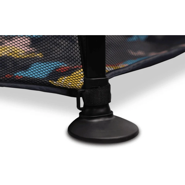 De stabiele stalen constructie van de box heeft een veiligheidsvoorziening die het product beschermt tegen per ongeluk inklappen, zelfs tijdens levendig spelen. Voeten voorzien van anti-slip pads zorgen ook voor de juiste positionering van de Roel box. Bovendien heeft hij een gebruiksvriendelijk, compact in- en uitvouwsysteem dat perfect is voor woonruimtes en waardoor de box gemakkelijk te vervoeren is. Daartoe bevat de productset een transporttas met een praktisch handvat om hem gemakkelijk te dragen.