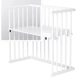 Dreamgood Co-sleeper Beuken Wit Gelakt | Matras Prime Air | Nest, Lichtgrijs Met Witte Stippen