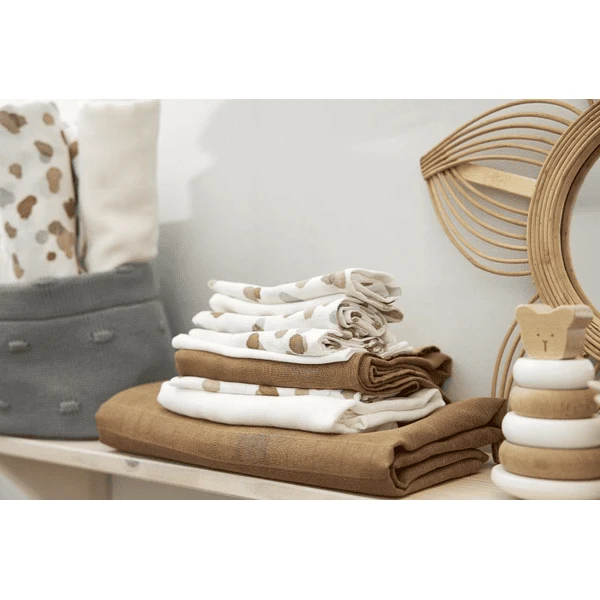- Set van 3: 3 mousseline monddoekjes in één set.