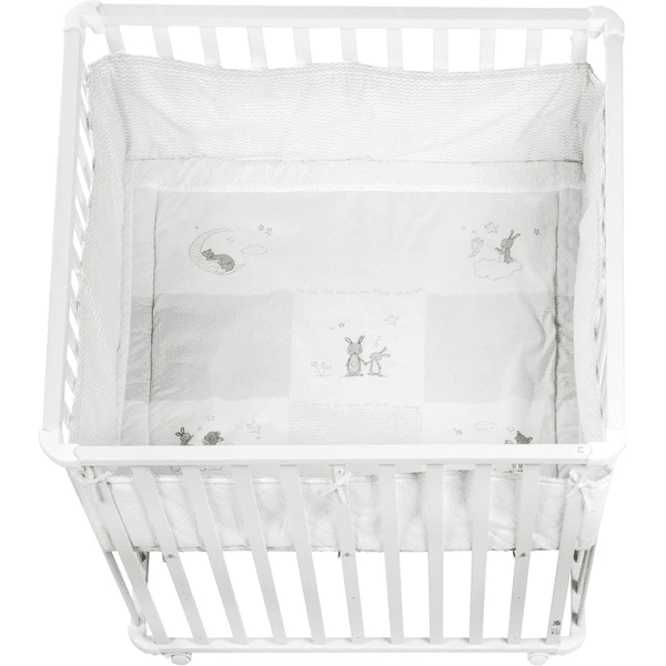 Houten box met rechte spijlen. Opgebouwd biedt deze 4-hoekige box (100 x 100 cm) van Roba een groot speel- en knuffeloppervlakte, bovendien is het lekker zacht dankzij het grote boxkleed. De box is in 3 hoogtes verstelbaar. De wieltjes zorgen ervoor dat de box eenvoudig te verplaatsen is. Kortom een ideale en ruime box!