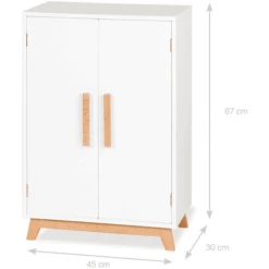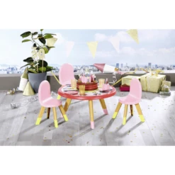Met deze theeset van stevig hout laat voor kleine theefans niets te wensen over. De set voor twee personen met verschillende theesoorten, melkschuim en koekjes zorgt voor realistisch speelplezier. Twee lepels maken de set compleet. De deksels van de theekan en suikerpot zijn afneembaar. Wie heeft er zin in een lekkere thee?