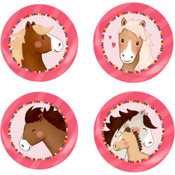 - De set bestaat uit vier kopjes, vier borden, een pot en een dienblad met magische ponymotieven en wordt geleverd in een liefdevol ontworpen omverpakking