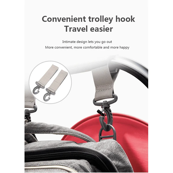 - 2 clips met klittenband en karabijnhaken voor eenvoudige bevestiging van de rugzak aan de kinderwagen