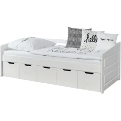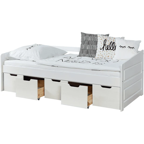 TiCAA Slaapbank Micki Beech wit met 5 lades aden