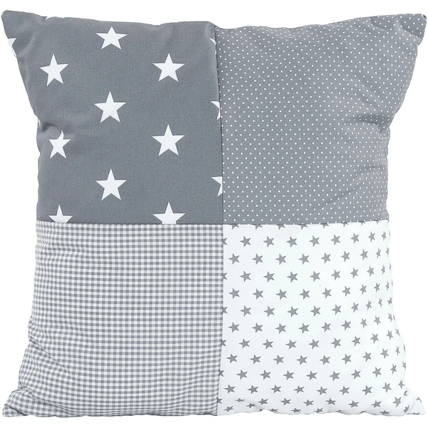 Voor de achterkant van de kussenhoes koos het Design merk ULLENBOOM voor een discrete kleur met delicate stippen. Op de voorkant staan vrolijke patronen en motieven. De decoratieve kussenovertrek in het Patch werk Design – wordt voor u geproduceerd in een klein familiebedrijf in de EU.
